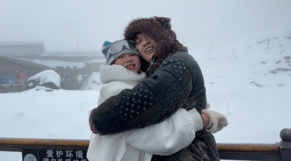 柬埔寨擁有千萬(wàn)粉絲的網(wǎng)紅姜思倪和亨維薩在玉龍雪山開心擁抱