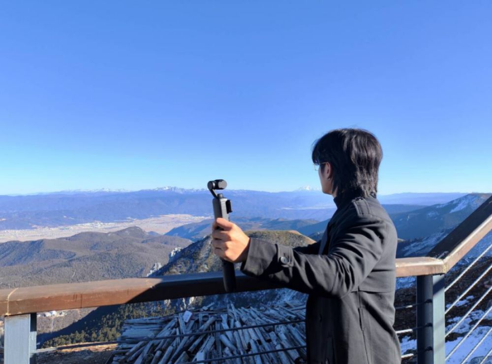 越南知名博主黎日觀在石卡雪山山頂進(jìn)行視頻創(chuàng)作