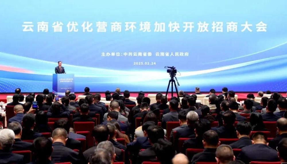 2025年2月24日,王寧在云南省優(yōu)化營(yíng)商環(huán)境加快開(kāi)放招商大會(huì)上講話。云南日?qǐng)?bào) 雷桐蘇 陳飛 攝