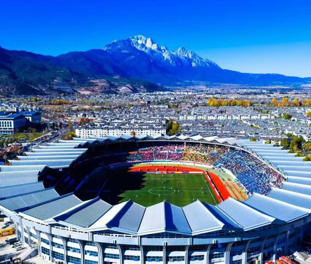 玉龍雪山腳下的麗江市體育發(fā)展中心體育場。