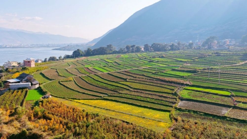 程海湖畔農(nóng)田。(楊波 攝)