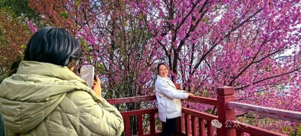 冬日寒意正濃,鳳慶縣城茶花公園內(nèi)卻是一片生機勃發(fā)、絢爛如春的景象。連片的櫻花悄然盛放,粉白交織,簇擁枝頭,如云似霞,吸引了眾多居民和游客前來觀賞打卡,沉醉在這份獨屬于冬日的詩意美景。