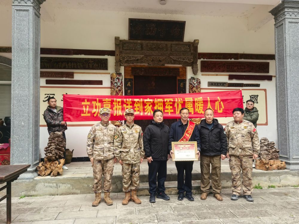 為現(xiàn)役軍人徐澤林家庭送上三等功喜報
