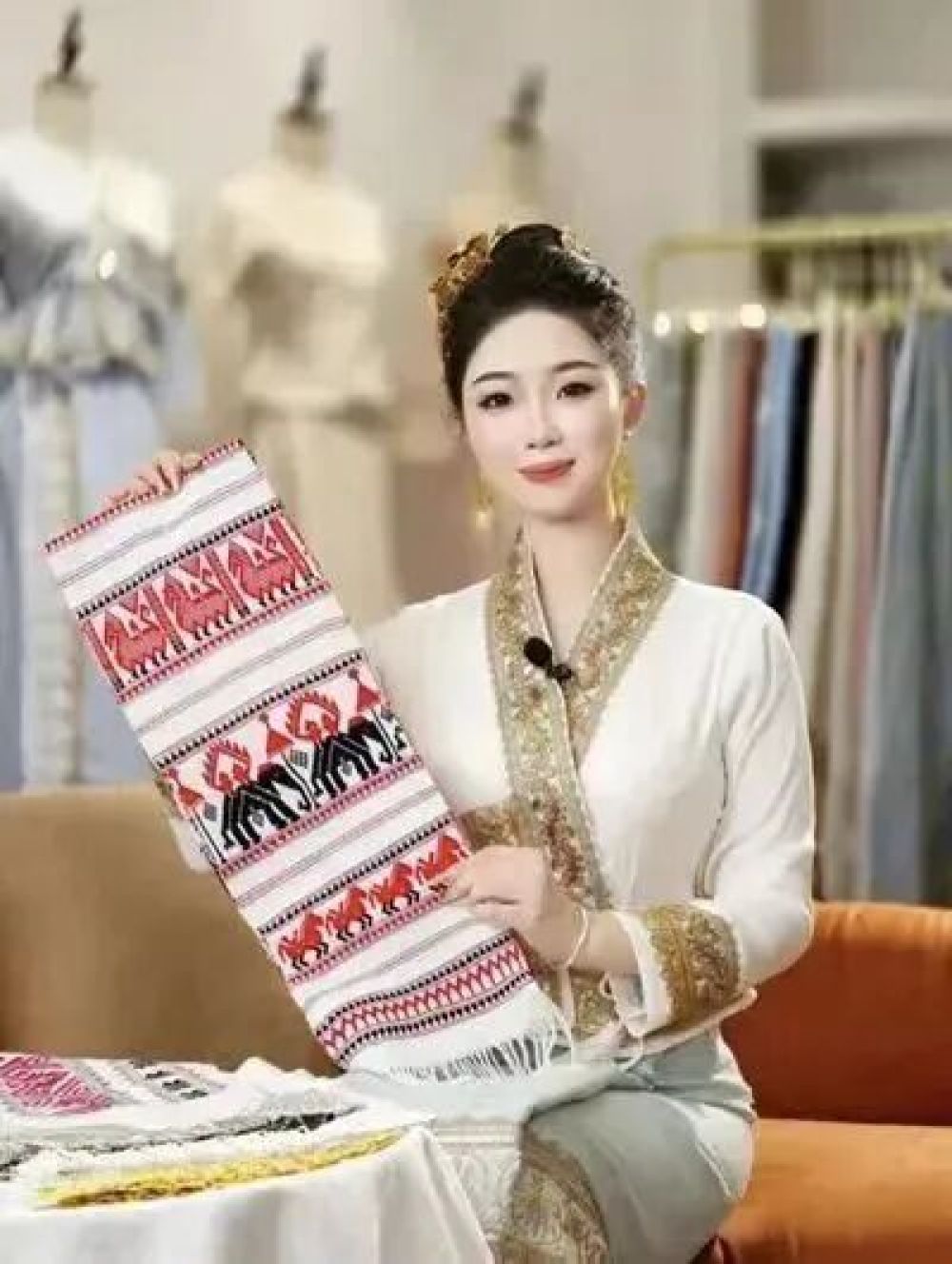 2020年3月她在村寨成立了服裝工作室,吸納8名不同年齡段的縫紉師、裁剪師、繡工和打包員等。服裝店裝修精美,服裝、面料品種齊全,獨(dú)特的原創(chuàng)風(fēng)格使得作品陸續(xù)熱門(mén),關(guān)注她的人也逐漸增多,生意也越來(lái)越紅火。同年5月,工作室拍攝了新款服飾宣傳片并注冊(cè)了傣霓裳原創(chuàng)品牌商標(biāo),在幾個(gè)月的堅(jiān)持下,作品突破15萬(wàn)播放量,并在短短幾天內(nèi)銷售幾百套視頻同款服裝,作品從快手的分享擴(kuò)大到抖音、微博、小紅書(shū)等App的直播、上架發(fā)布,傣服飾的銷量隨著款式多樣化設(shè)計(jì)上架,越來(lái)越受消費(fèi)者喜愛(ài)。10月,她成立了西雙版納傣霓裳服飾設(shè)計(jì)有限公司并成功注冊(cè)商標(biāo)。