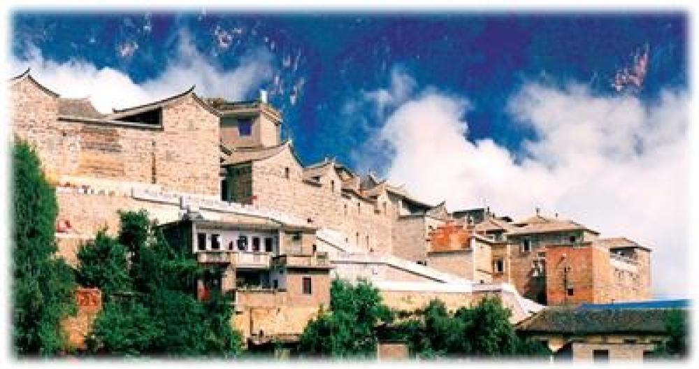 站在東門(mén)馬幫文化廣場(chǎng)上抬頭仰望,石階之上,東門(mén)樓——雙瓦頂磚墻的三層城樓雄踞眼前,莊重宏闊;一層城門(mén)的卷拱門(mén)頭上書(shū)“迤薩”二字。進(jìn)了城門(mén),姚家大院、錢家大院和12棟迤薩古民居呈中西合璧的方形碉堡狀,沿著山脊緊湊排列,高低錯(cuò)落有致,氣勢(shì)磅礴壯觀。稍遠(yuǎn),100多棟迤薩古民居建筑散布城中,和“東門(mén)樓及迤薩民居”古建筑群共同構(gòu)成了這座馬幫古鎮(zhèn)的獨(dú)特風(fēng)貌。迤薩民居大都建于清代和民國(guó)初年,享有“江外建筑大觀園”和“邊地建筑博物館”美譽(yù)。