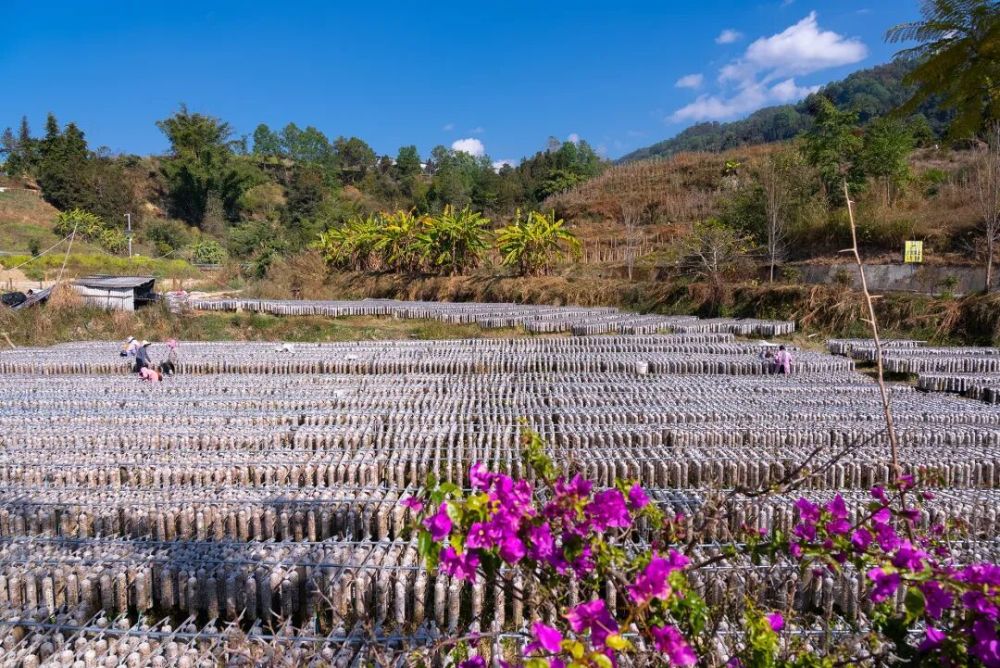 龍川江畔濕潤(rùn)的氣候與肥沃的土壤,孕育出的黑木耳品相上乘。其木耳一面網(wǎng)灰一面墨黑,泡發(fā)率可達(dá)1:18,妥妥的一級(jí)品質(zhì)。當(dāng)?shù)亟鹎锸虏シN菌包,冬月便能采收,采摘期可持續(xù)至次年五六月份?!斑@墑我們已經(jīng)摘了10多桶,大概400多斤!”沈會(huì)香捧著剛采收的木耳,笑意盈盈,她熟練地分享晾曬訣竅,“曬到摸起來(lái)脆生生的,就算干透了。”