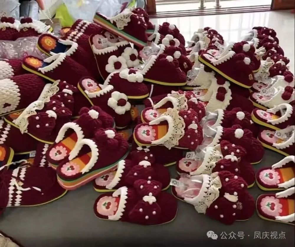 真正的改變發(fā)生在2023年。在腰街彝族鄉(xiāng)人民政府“數字賦能鄉(xiāng)村振興”的引導下,張陳紅在親友鼓勵下,嘗試著將自己的作品拍照、配上簡單文字,發(fā)到了社交平臺上。起初只是分享,沒想到竟引來了外地網友的咨詢,并成功接到了第一筆訂單——一雙毛線拖鞋?!爱敃r又高興又擔心,怕自己做不好。”她回憶道。這雙鞋,成了她在互聯(lián)網上賺到的“第一桶金”,也為她的手藝打開了新的大門。