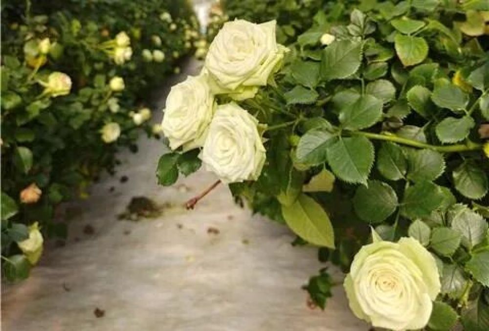 云南元豐祥農(nóng)業(yè)科技有限公司肥水技術(shù)員 宋樸鳳:我們采用椰糠來代替土壤,減少勞力和成本,同時還大大提高質(zhì)量和產(chǎn)量。傳統(tǒng)土壤種植玫瑰一年只能采收到四到五回,無土栽培玫瑰可以采收八到九回。而且椰糠如果檢測數(shù)值不對,還可以通過清水沖洗讓它恢復(fù)重新利用。