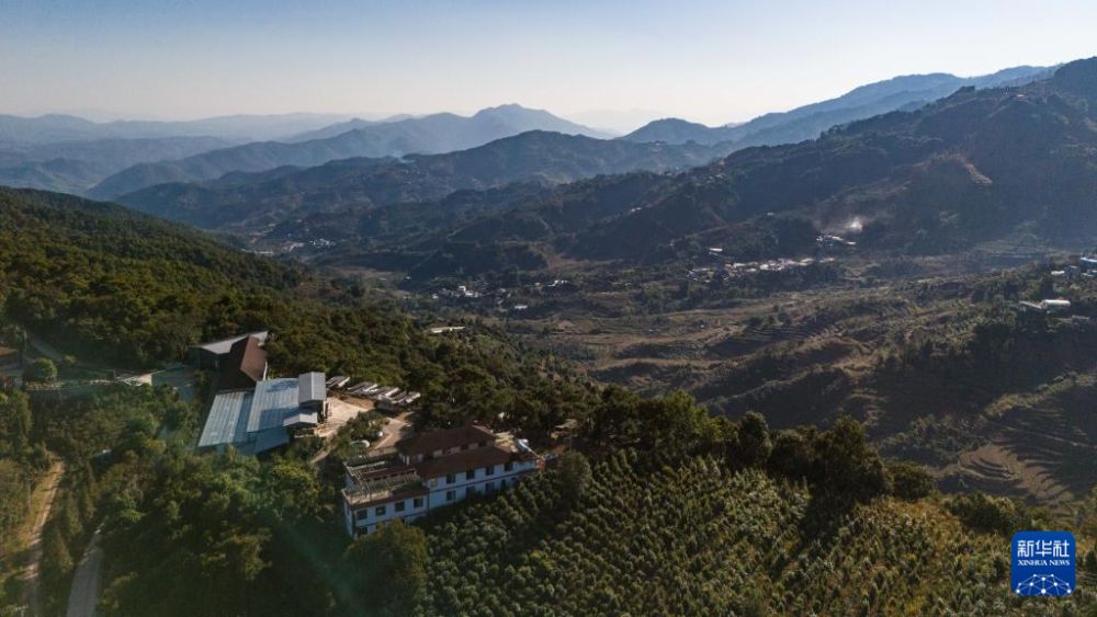 這是1月21日在臨滄市臨翔區(qū)邦東鄉(xiāng)昔歸村拍攝的昔歸咖啡莊園(無(wú)人機(jī)照片)。新華社記者 高詠薇 攝