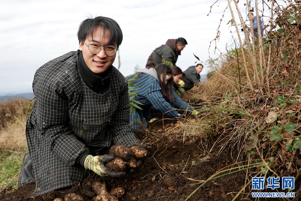 當(dāng)?shù)剞r(nóng)戶采挖天麻(2025年11月20日攝)。新華網(wǎng)發(fā)(徐華陵 攝)