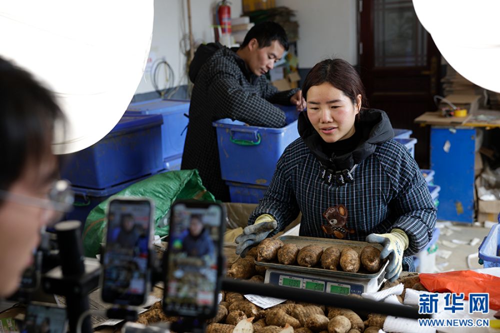 直播間里,主播在介紹小草壩天麻(2025年11月20日攝)。新華網(wǎng)發(fā)(徐華陵 攝)