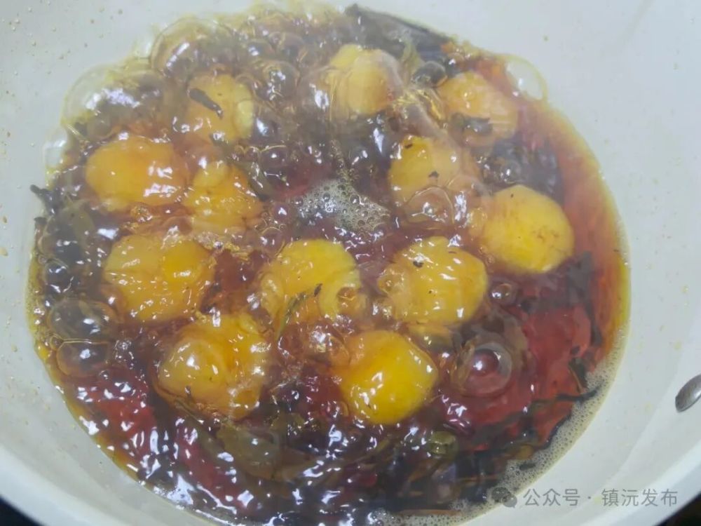 冬季,鎮(zhèn)沅縣的青皮甘蔗正是采收的季節(jié),這種甘蔗松脆易嚼,汁水豐沛,甘甜清爽,帶有淡淡的植物清香,當?shù)厝擞盟钆洳枞~、白砂糖慢煮,制作成冬日特色暖飲——焦糖甘蔗茶,喝起來口感順滑、溫潤甘醇。