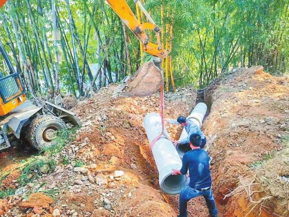 工作人員指導(dǎo)耿馬縣賀派鄉(xiāng)芒那自然村和芒買自然村村民開展農(nóng)村生活污水治理。
