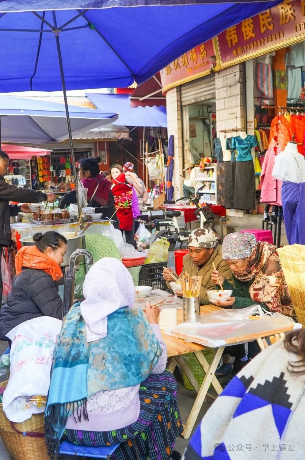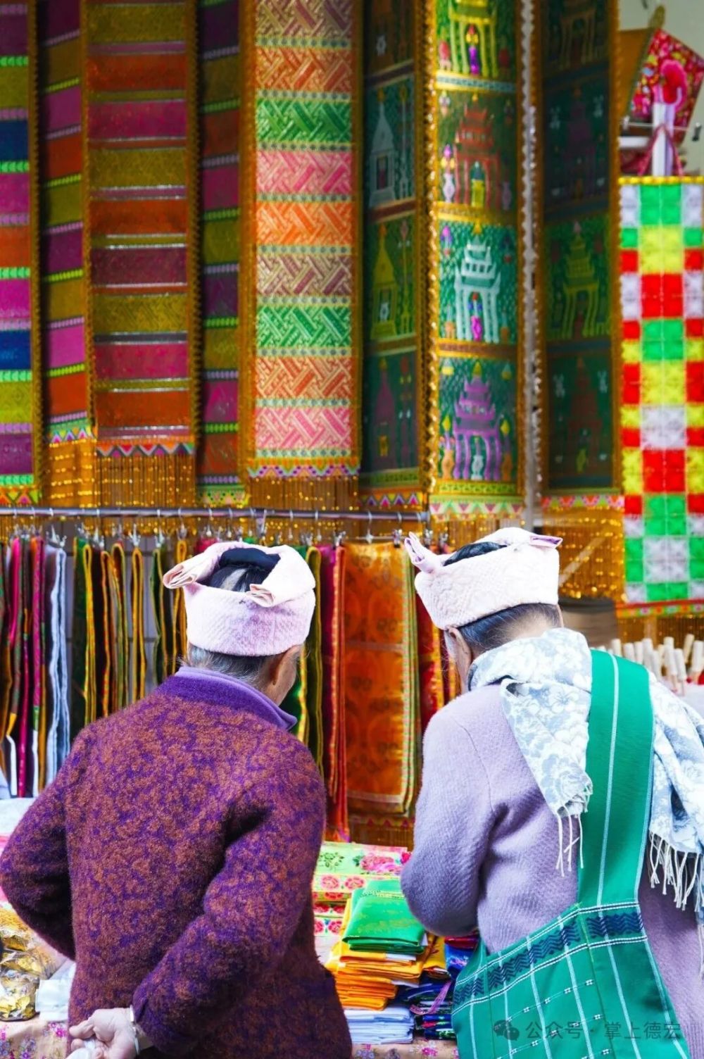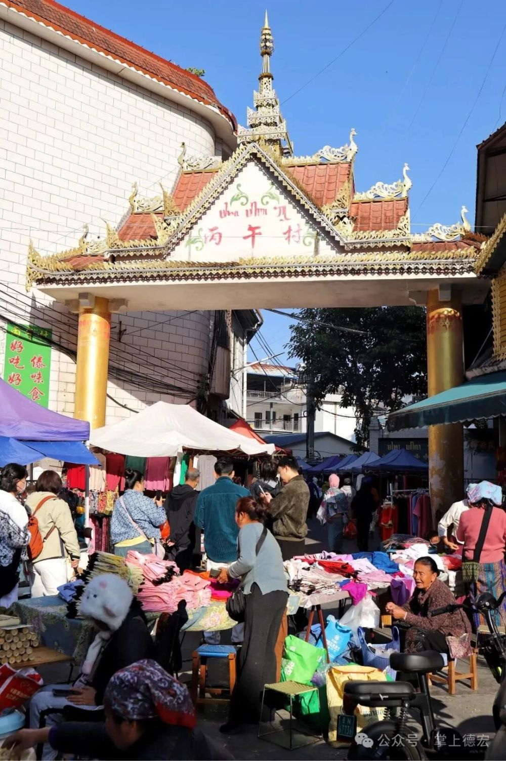 街兩旁,絢麗的傣錦“唰”地展開