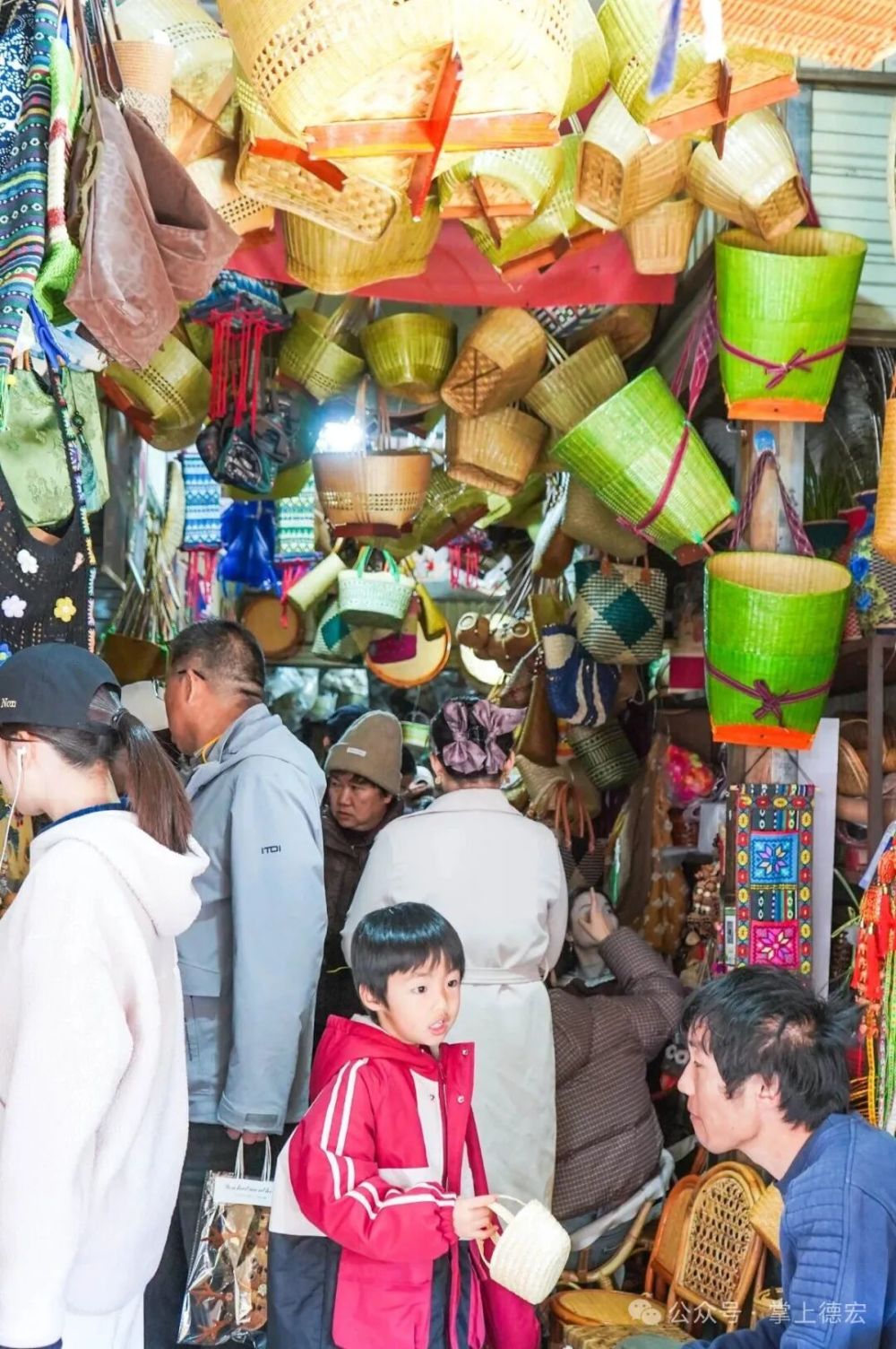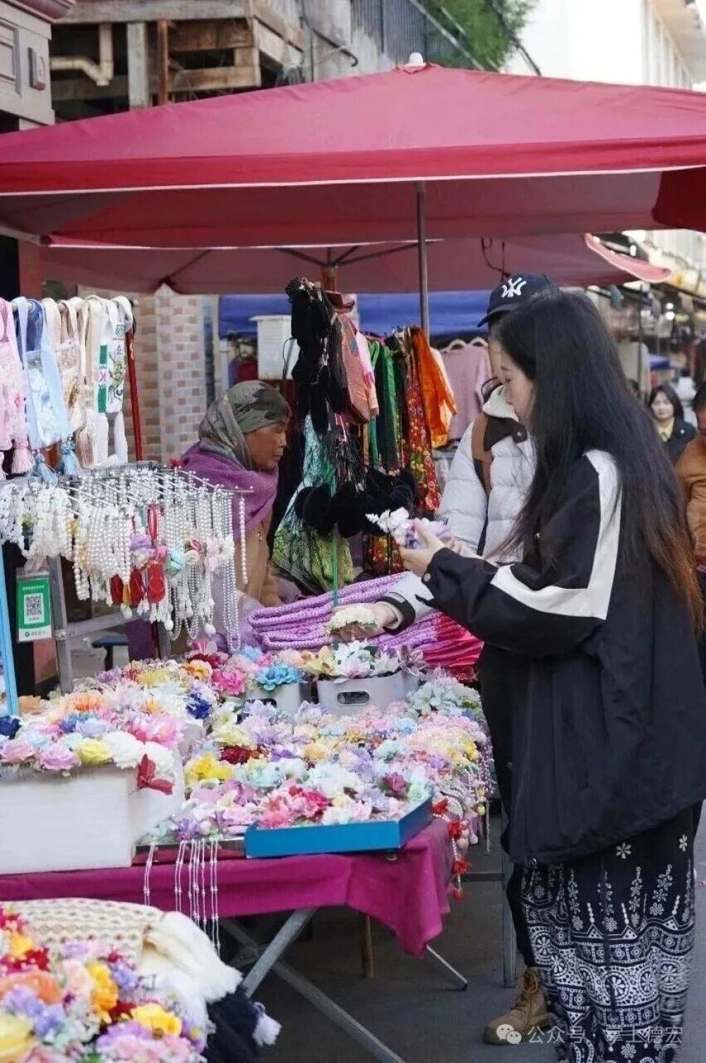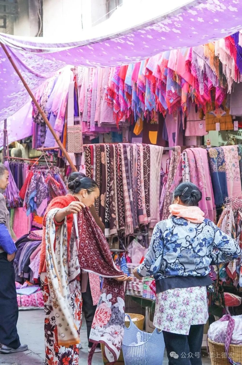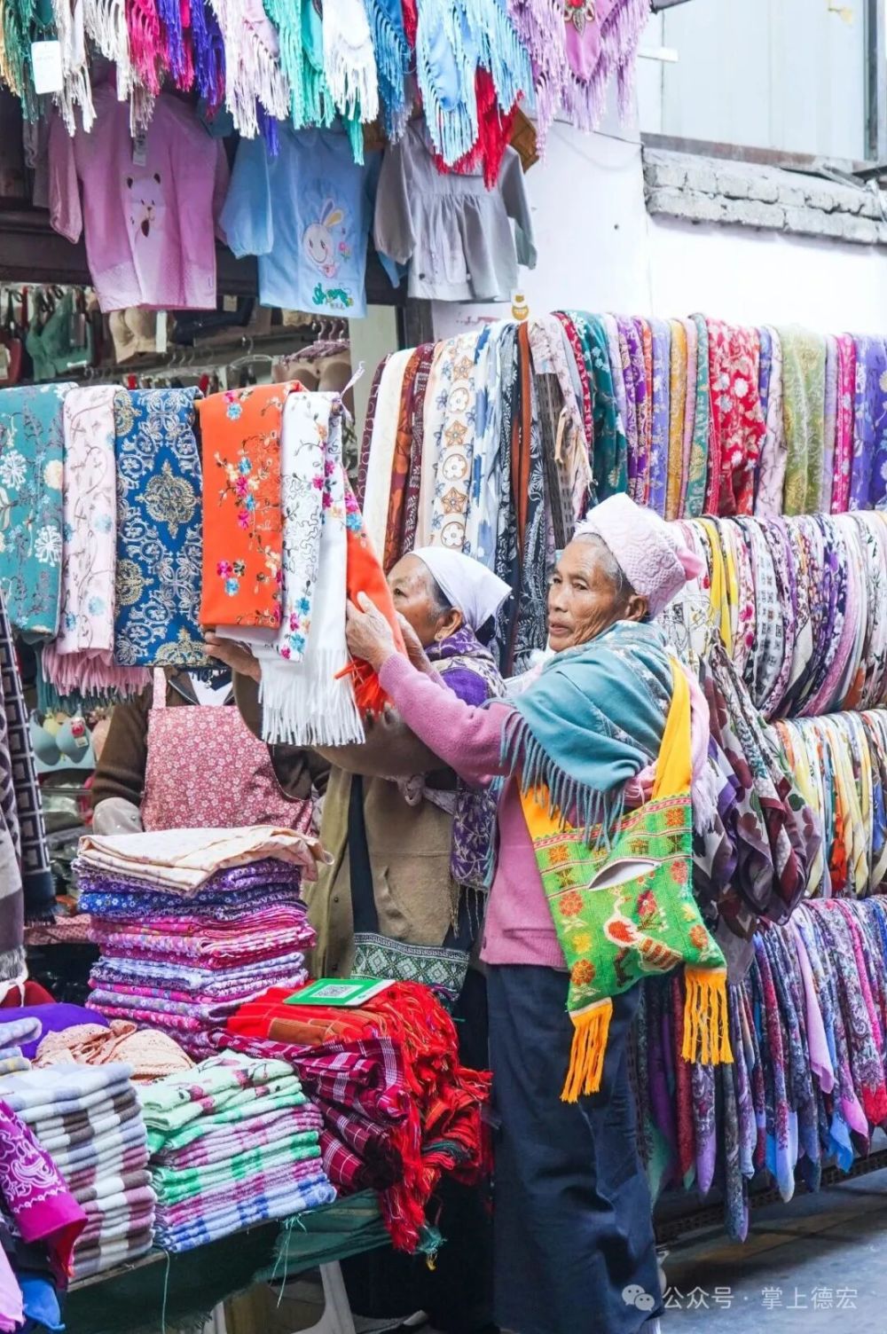 街兩旁,絢麗的傣錦“唰”地展開