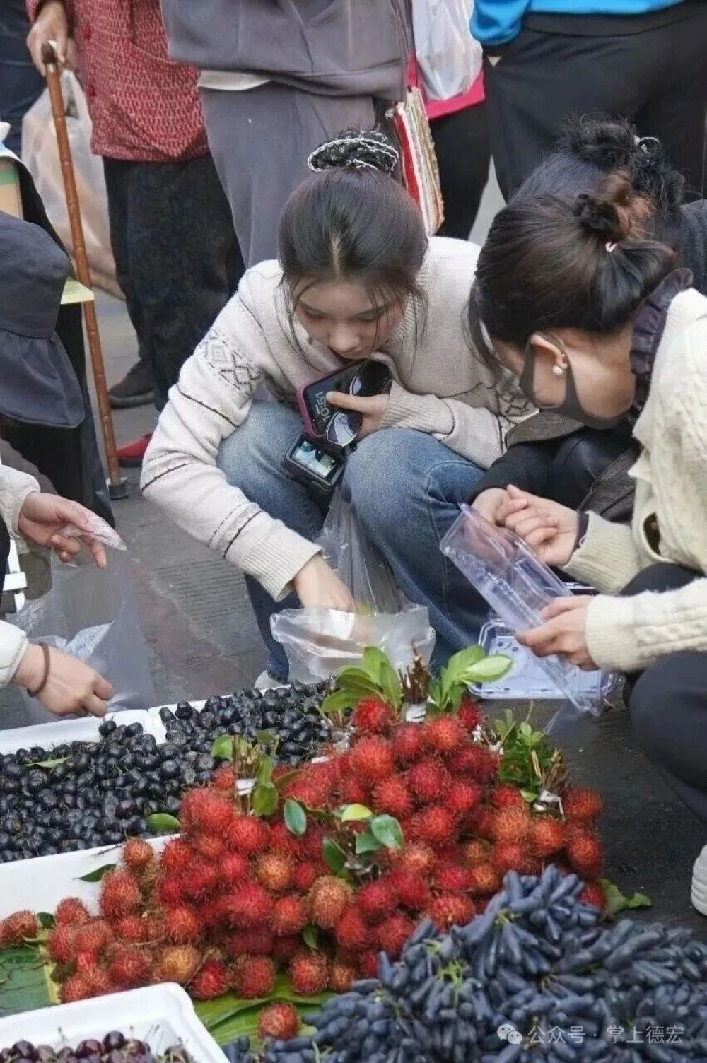 舉著相機的年輕人擠在攤前