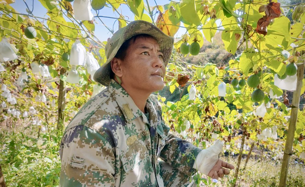 雨林是他的家,也是他生活的依托。每月800元的生態(tài)護(hù)林員補(bǔ)助并不高,卻也為這個(gè)家庭帶來(lái)了一份穩(wěn)定收入?!坝辛诉@份責(zé)任,心里就踏實(shí)?!彼剿髦安豢硺?shù)也能增收”的路,管護(hù)古茶樹(shù),種植熱情果,今年還準(zhǔn)備在茶樹(shù)下套種咖啡。