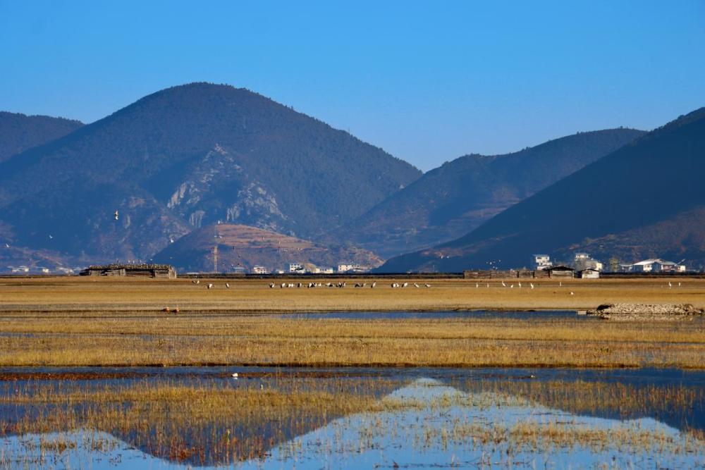 能成為“飛鳥天堂”,納帕海本身就自帶底氣。藏語里,它意為“森林背后的湖泊”,這片2083公頃的季節(jié)性沼澤濕地,藏著不為人知的溫柔——夏季水澤盈盈,草木豐茂;冬季化作廣袤草甸,成為候鳥們的“越冬家園”。