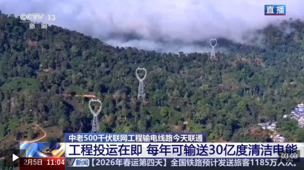 今天(5日)上午,中老500千伏聯(lián)網(wǎng)工程輸電線路跨越兩國邊境正式聯(lián)通,標志著這項重大工程取得階段性進展。
