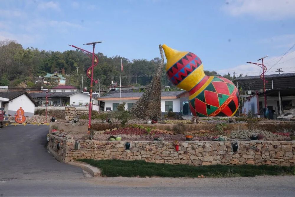 作為力所鄉(xiāng)的主體民族,拉祜族與葫蘆有著深厚的文化羈絆——在拉祜族創(chuàng)世史詩(shī)中,葫蘆是祖先誕生的圣靈,象征著吉祥幸福與生生不息的生命力量。去年,借著全縣綠美建設(shè)的東風(fēng),南亢村將民族文化與生態(tài)整治深度融合,在廣場(chǎng)立起標(biāo)志性葫蘆建筑,沿村寨道路遍植各類(lèi)多肉植物,讓石頭小寨在保留傳統(tǒng)風(fēng)貌的同時(shí)煥發(fā)新生。