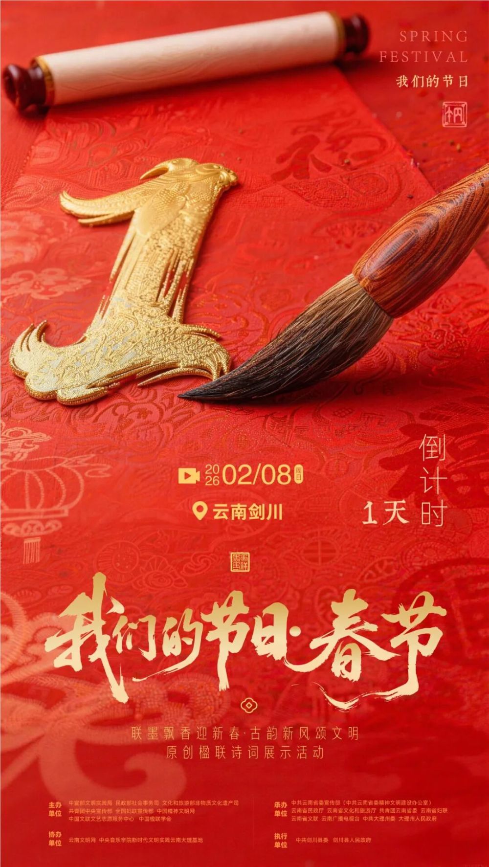 一紙楹聯(lián)承家風(fēng),滿城墨香賀新春。2月8日,2026年全國“我們的節(jié)日·春節(jié)”主題文化活動(dòng)將在大理白族自治州劍川縣拉開帷幕?;顒?dòng)現(xiàn)場,非遺展演、楹聯(lián)賞析、民俗互動(dòng)等將輪番上演,邀你共赴這場文化盛宴,在紅聯(lián)福字間,在非遺煙火里,邂逅最有底蘊(yùn)的中國年。