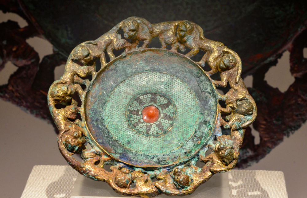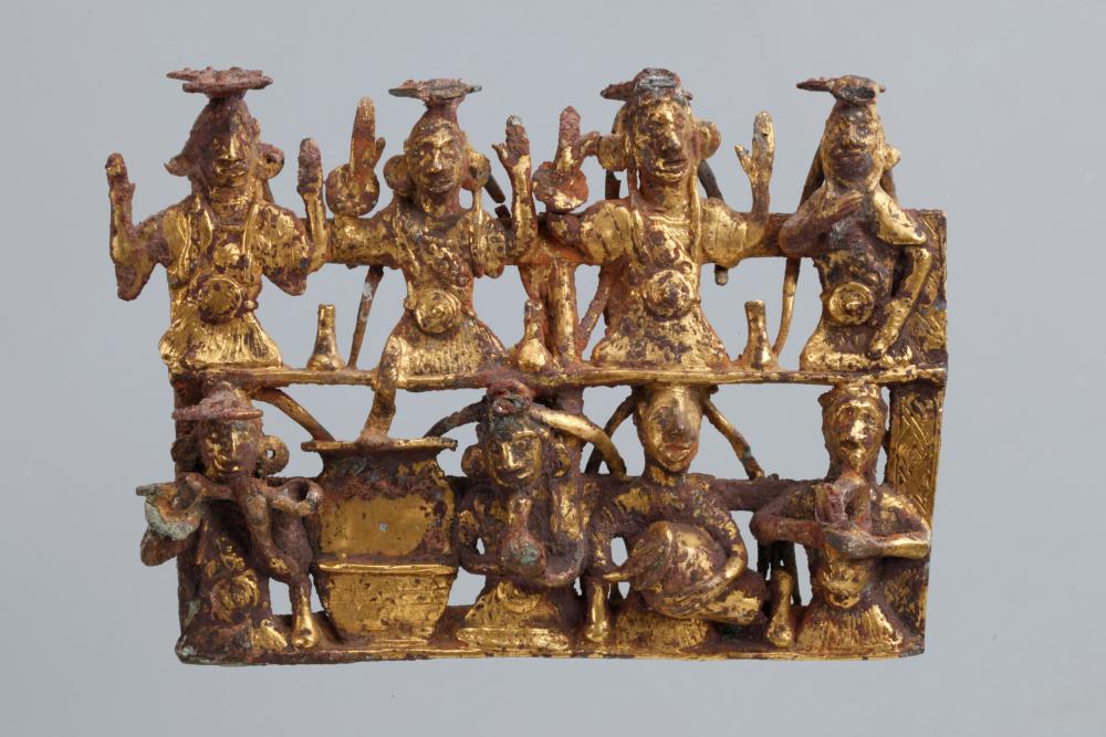 △西漢 鎏金八人樂(lè)舞銅扣飾 云南省博物館藏