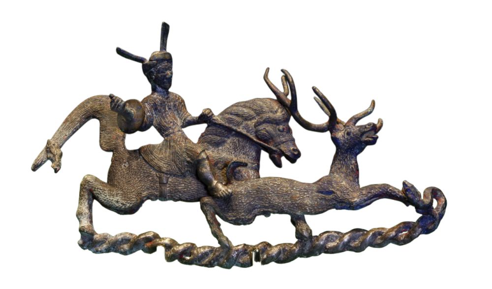 △西漢 騎士獵鹿銅扣飾 云南省博物館藏