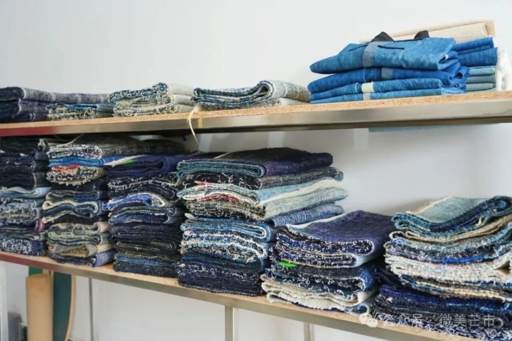 在這個過程中,老黑收獲了不少“寶藏”。他最鐘愛的,正是那些未經(jīng)修飾、保持著最原始質(zhì)感和自然肌理的老布,甚至覺得“補丁都很美”?!坝行┡渖貏e出眾,工藝做得很好,我就自己收藏幾條不賣的?!彼钢粔K布說,“像這條,我覺得破得很漂亮。我喜歡色塊比較大的,更有意境,可以慢慢去欣賞?!?/span>