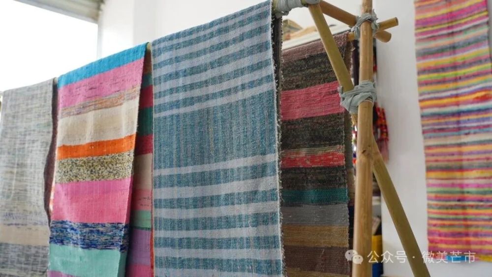 真正留住他的,是傣族裂織布。這種采用傣族上下行織錦工藝,將舊日的零散布條搓成緯線重新織成的織物,既有沉積歲月的質(zhì)感,又有鮮活跳躍的配色?!暗谝谎墼诰W(wǎng)上看到,就覺得這東西有很強的生命力。”老黑說,“它表面粗糙,但每一塊都有獨特的美。更重要的是它的理念——把舊的東西重新利用起來,這在現(xiàn)在物質(zhì)豐富的時代,是我們比較缺失的東西?!?/span>