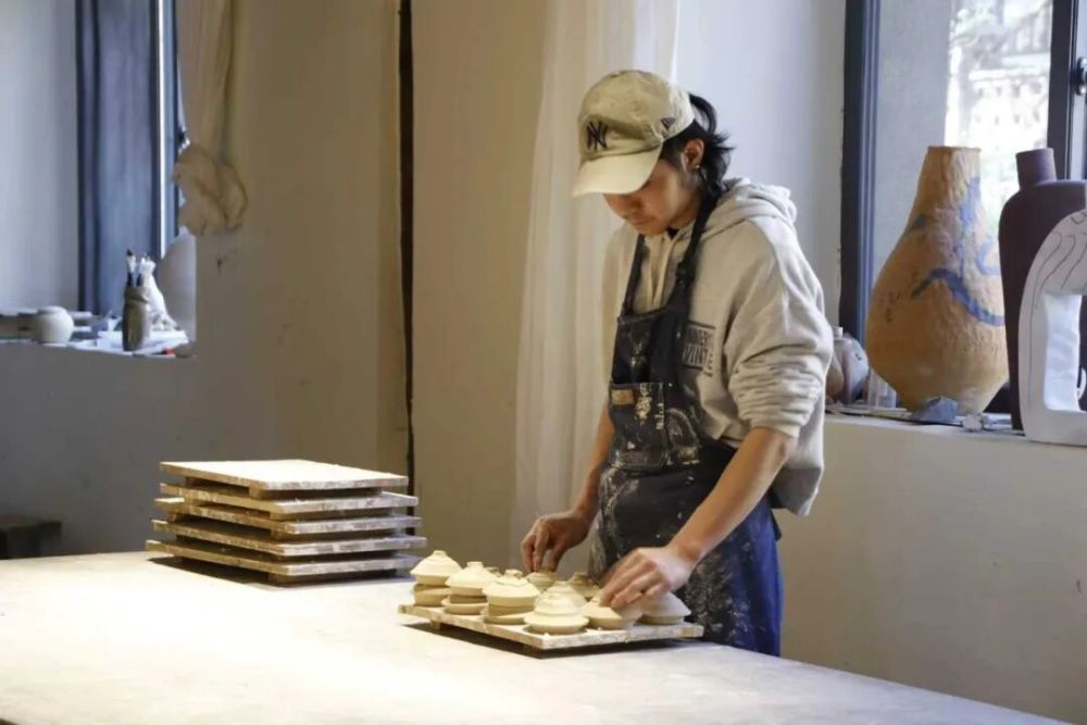林楷易,云南曲靖人,既是深耕陶藝領(lǐng)域的現(xiàn)代陶藝家,也是癡迷傳統(tǒng)工藝的柴燒愛好者。2017年與陶藝結(jié)緣后,他步履不停,遠赴景德鎮(zhèn)拜師學藝,師從國家級陶藝大師汲取傳統(tǒng)精髓,又與國外藝術(shù)家切磋交流,吸納前沿創(chuàng)作理念,還曾在城市開設工作室,積累了豐富的創(chuàng)作與運營經(jīng)驗。然而,喧囂的都市終究難以安放一顆追尋寧靜創(chuàng)作的心,一次偶然的楊外營旅居村采風,讓他與這個小村結(jié)下不解之緣?!捌鸪踔皇窍雭砺镁硬娠L,尋找創(chuàng)作靈感,沒想到這里正在打造旅居村,我發(fā)現(xiàn)這里既有寧靜自由的創(chuàng)作空間,能實現(xiàn)與城市的物理隔離,更能讓我沉下心來,與泥土進行最深層次的對話,回歸創(chuàng)作本源。”談及扎根楊外營的初衷,林楷易感慨萬千。