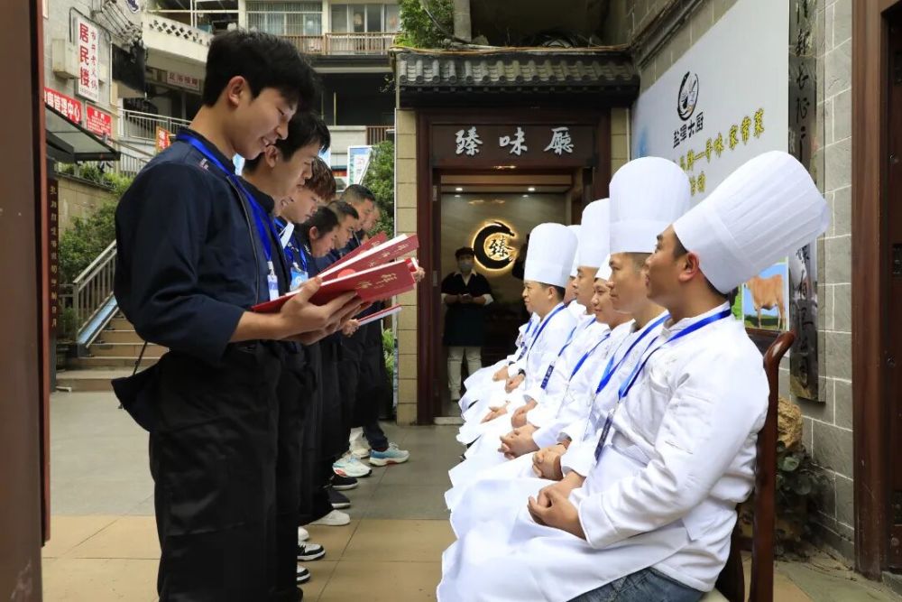 活動在莊重的拜師儀式中拉開帷幕。徒弟們呈遞拜帖,行三拜鞠躬禮;廚師代表以訓(xùn)誡寄語,勉勵后輩恪守匠心、傳承技藝。隨后,來自全縣9家餐飲企業(yè)的師徒同臺競技,5名專業(yè)評委現(xiàn)場品鑒。