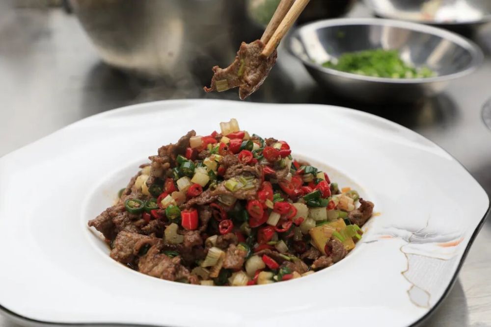 除規(guī)定的小炒黃牛肉外,香辣牛板筋、尖椒燴牛肉、清燉牛肉、鮮椒牛肉、燒椒豆花牛肉、香辣牛胸肉等一道道將鹽津肉牛的鮮美與精湛廚藝完美融合的特色拿手菜,展現(xiàn)出主廚們對傳統(tǒng)家常菜的傳承與創(chuàng)新。經(jīng)過激烈角逐,各組選手精心烹制的菜品陸續(xù)呈現(xiàn),令人垂涎。