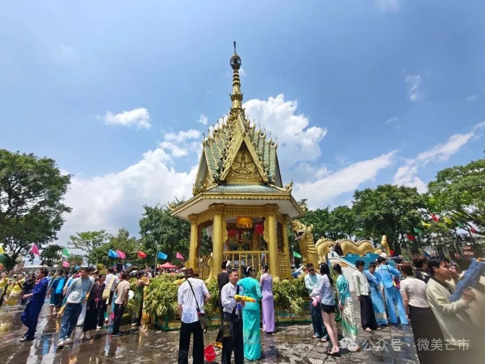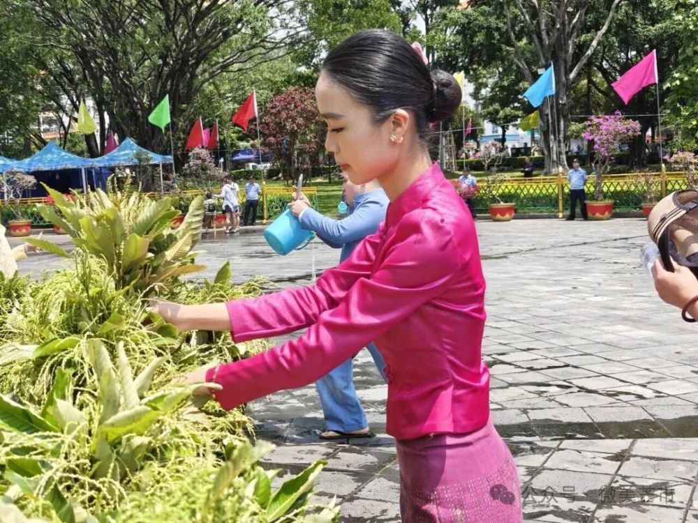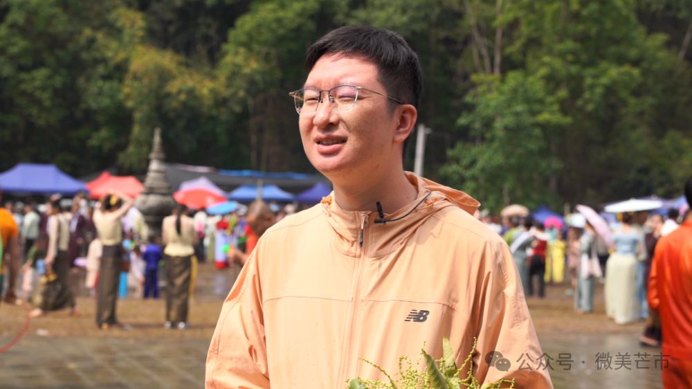 “我是從江蘇來的,雖然是第五年參加潑水節(jié),但今年是第一次參加采花活動,我感覺很激動很開心,早上我和愛人一起去采花,剛剛我已把采來的賞建花裝扮在龍亭,我希望我的家庭和和美美,家人們都身體健康。”江蘇游客林藝偉說。