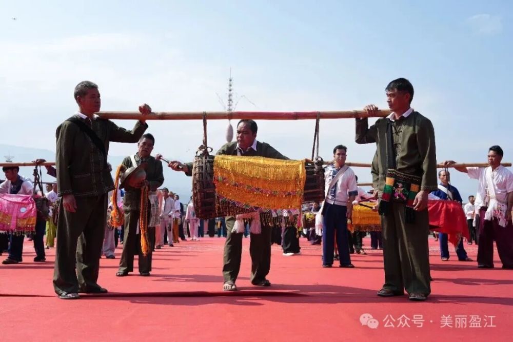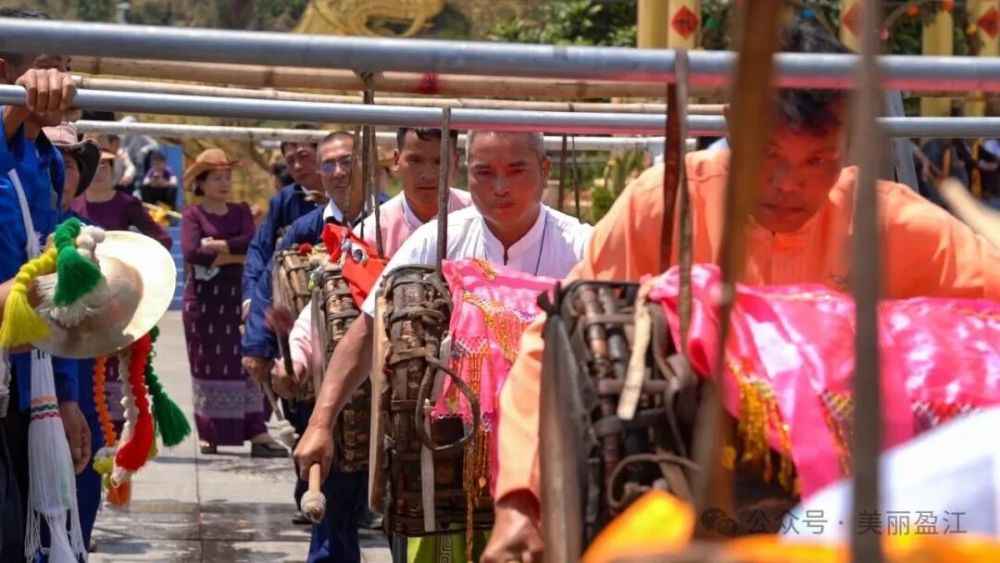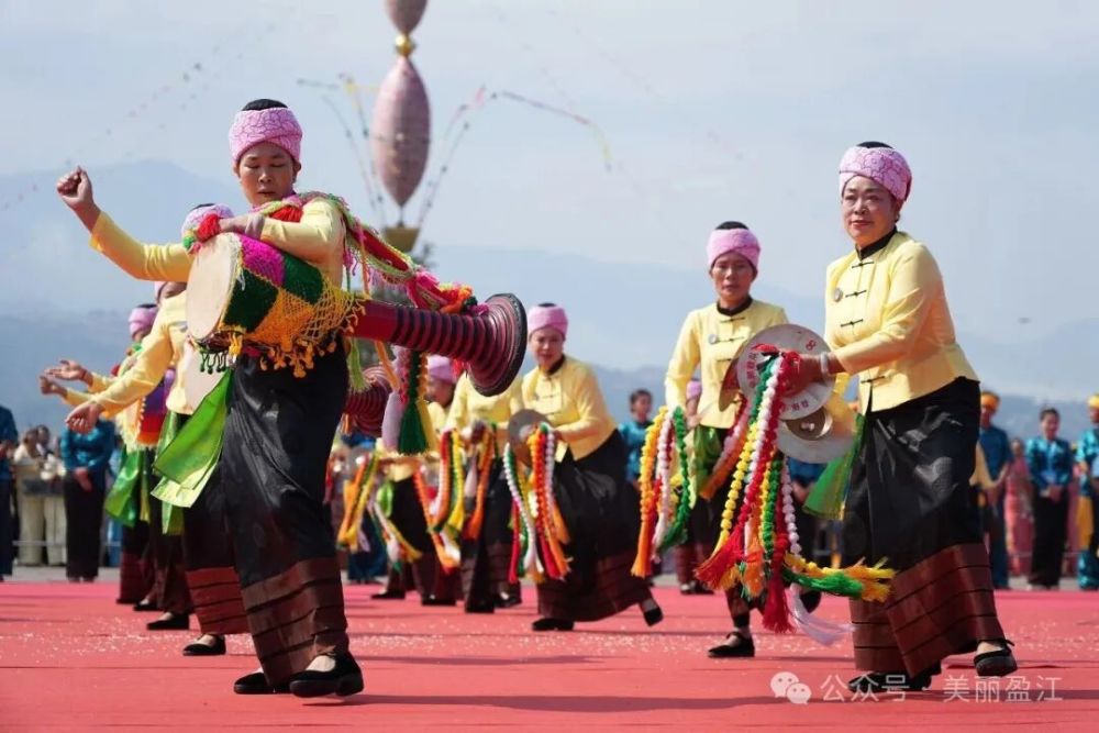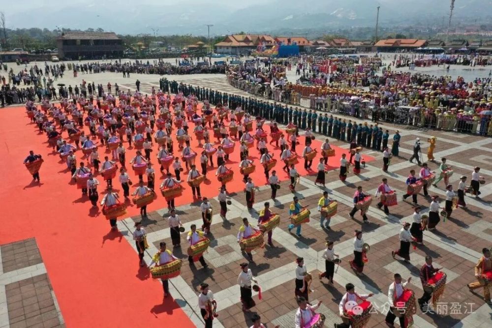 當(dāng)天下午,廣場上鼓聲雷動(dòng),氣勢(shì)恢宏。數(shù)十名鼓手齊上陣,共同奏響傣族傳統(tǒng)樂器“光弄”(大鼓)。渾厚悠遠(yuǎn)的鼓聲陣陣回蕩,奏響了震撼人心的民族樂章,充分展現(xiàn)了盈江獨(dú)特的文化魅力。