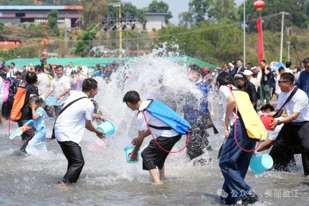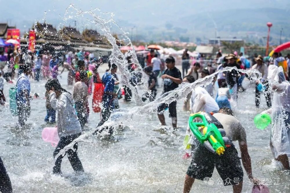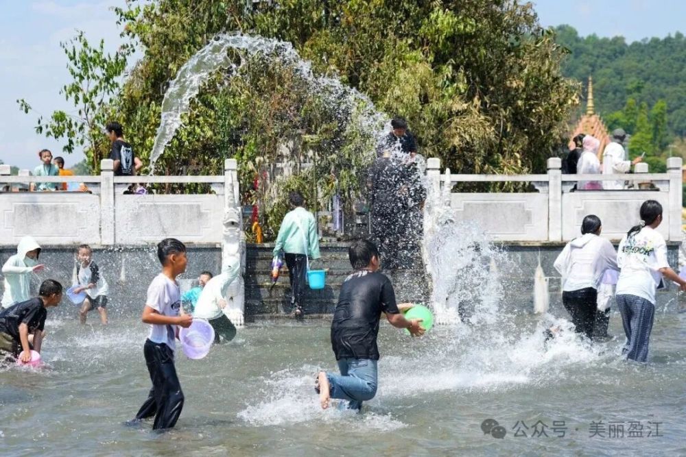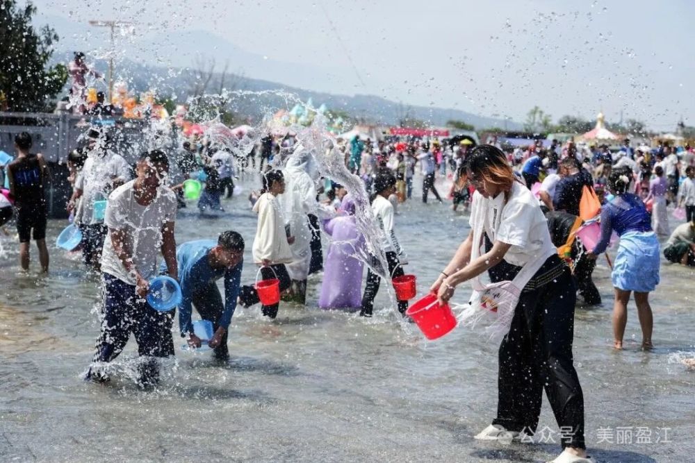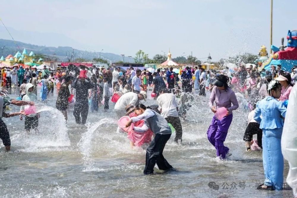 中午12時(shí),潑水狂歡正式開啟。頃刻間,整個(gè)潑水廣場化為一片歡樂的海洋。人們手持水盆、水槍、水桶,相互潑灑著象征吉祥與祝福的清水,盡情享受著潑水帶來的清涼與歡樂。