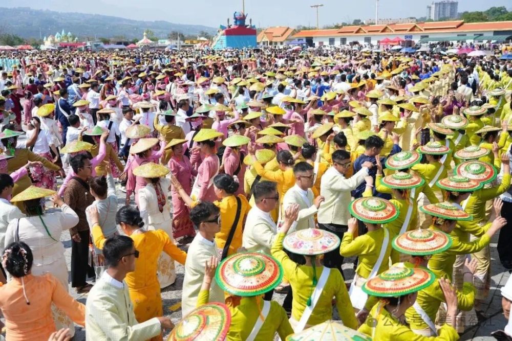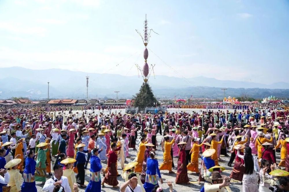 上午10時(shí),開幕式展演在熱烈的掌聲中拉開帷幕。充滿力量與技巧的傣拳、傣棍表演,韻味獨(dú)特的傣劇選段,清脆激昂的“光邦”(小鼓)演奏以及熱情奔放的德昂族舞蹈等節(jié)目輪番上演,生動(dòng)展現(xiàn)了傣族、德昂族等少數(shù)民族的文化瑰寶。展演完畢,萬眾期待的“萬人嘎伴光”聯(lián)歡活動(dòng)隨即開始,人們圍著“賞建”樹,踏著歡快的鼓點(diǎn)翩躚起舞,場面蔚為壯觀。