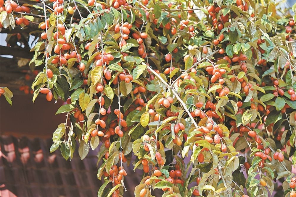一樹紅果壓枝頭。