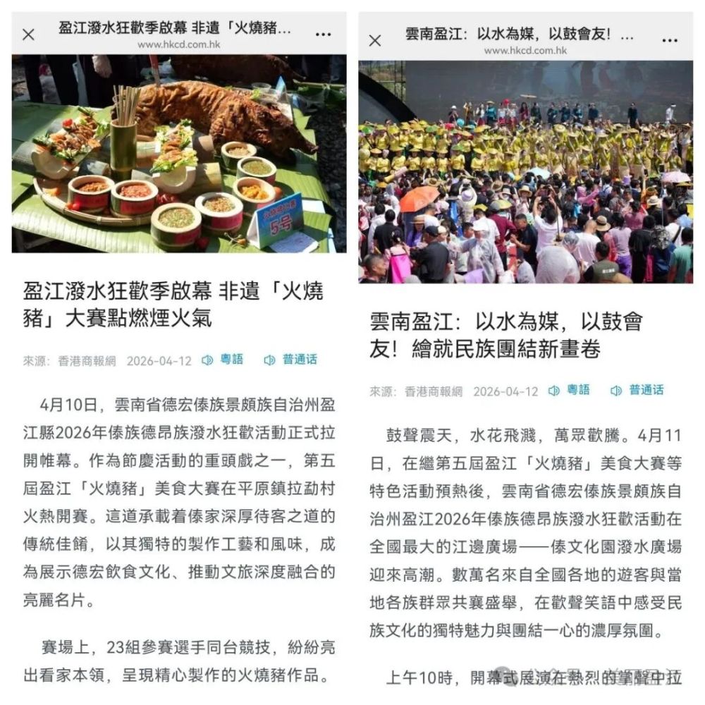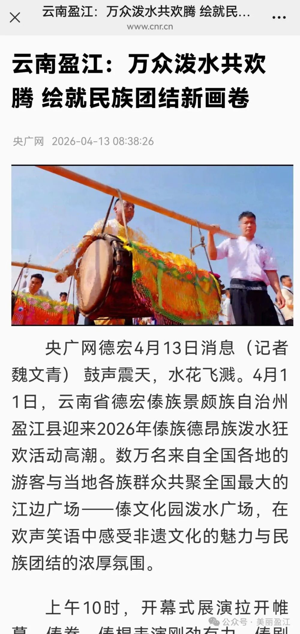 官媒領(lǐng)航、自媒聚力、全網(wǎng)同頻。多層次、立體化、全覆蓋的全媒體宣傳矩陣,讓盈江2026年傣族德昂族潑水狂歡活動熱度持續(xù)攀升。以媒體為橋,展邊疆風(fēng)采、傳民族溫情、聚發(fā)展動能,不斷擦亮盈江生態(tài)顏值、文化底蘊、民族團結(jié)名片,讓更多人愛上盈江、奔赴盈江、扎根盈江!