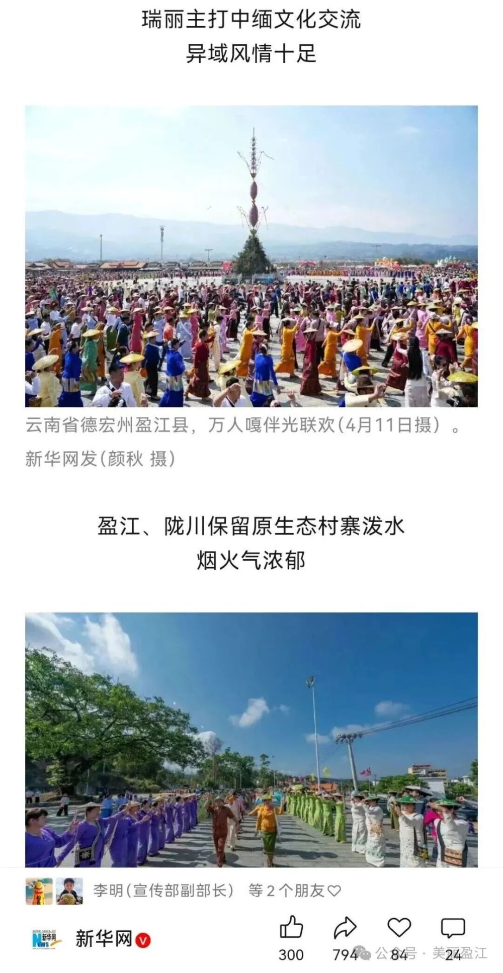 新華社、央廣網(wǎng)等中央權(quán)威媒體發(fā)出報道,聚焦盈江傣文化園潑水狂歡盛況,讓萬人嘎伴光、非遺光邦、光弄大鼓展演、民族交融盛景展示在廣大網(wǎng)友眼前,生動展現(xiàn)以水為媒、以鼓會友,各民族像石榴籽緊緊相擁的民族團結(jié)畫卷。