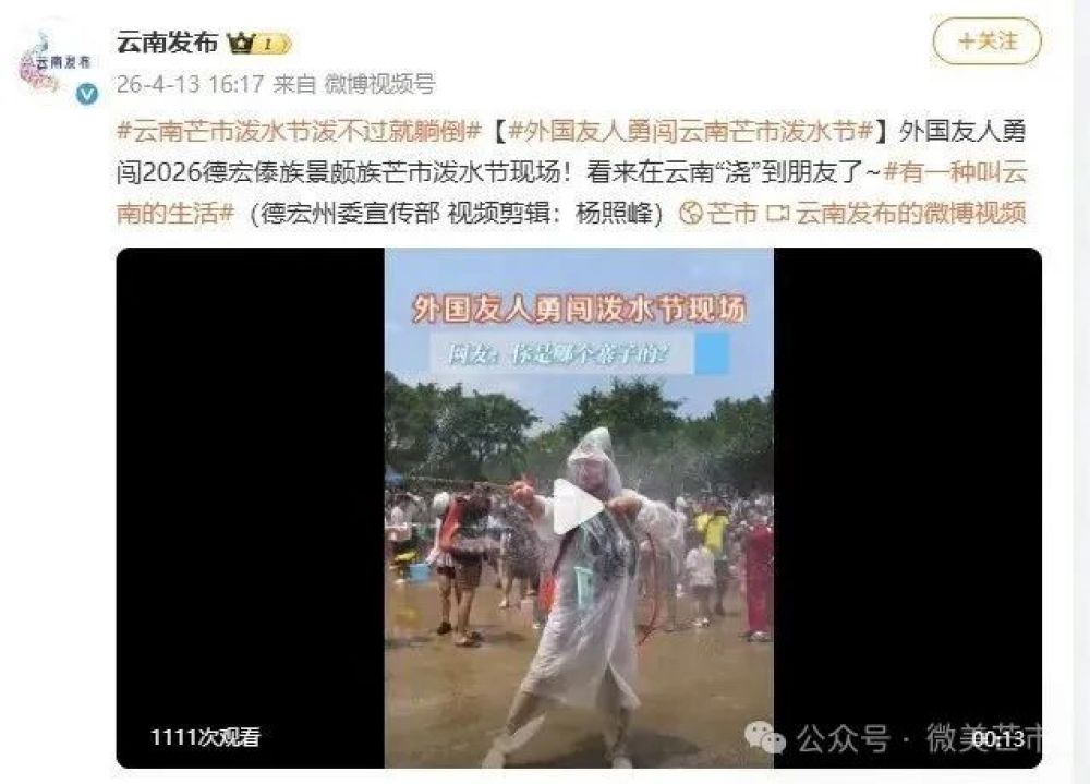4月13日,2026年芒市潑水節(jié)狂歡活動(dòng)圓滿落幕。活動(dòng)中,芒市以主流媒體為引領(lǐng)、本土力量為支撐、全民參與為底色,全方位展現(xiàn)芒市民族文化魅力和城市文旅活力,推動(dòng)芒市城市知名度和文旅熱度持續(xù)飆升。