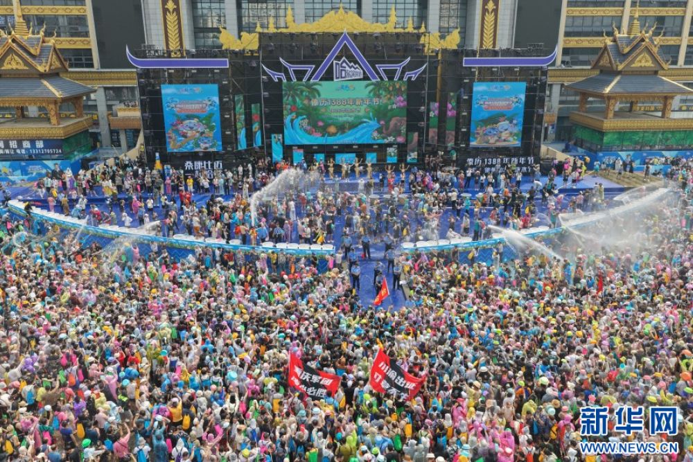 4月15日,云南省西雙版納傣族自治州萬人潑水狂歡盛大啟幕。市民、游客歡聚潑水廣場,水花漫天飛舞,歡聲此起彼伏,大家手持水盆、水槍盡情潑灑,互送祝福。(完)