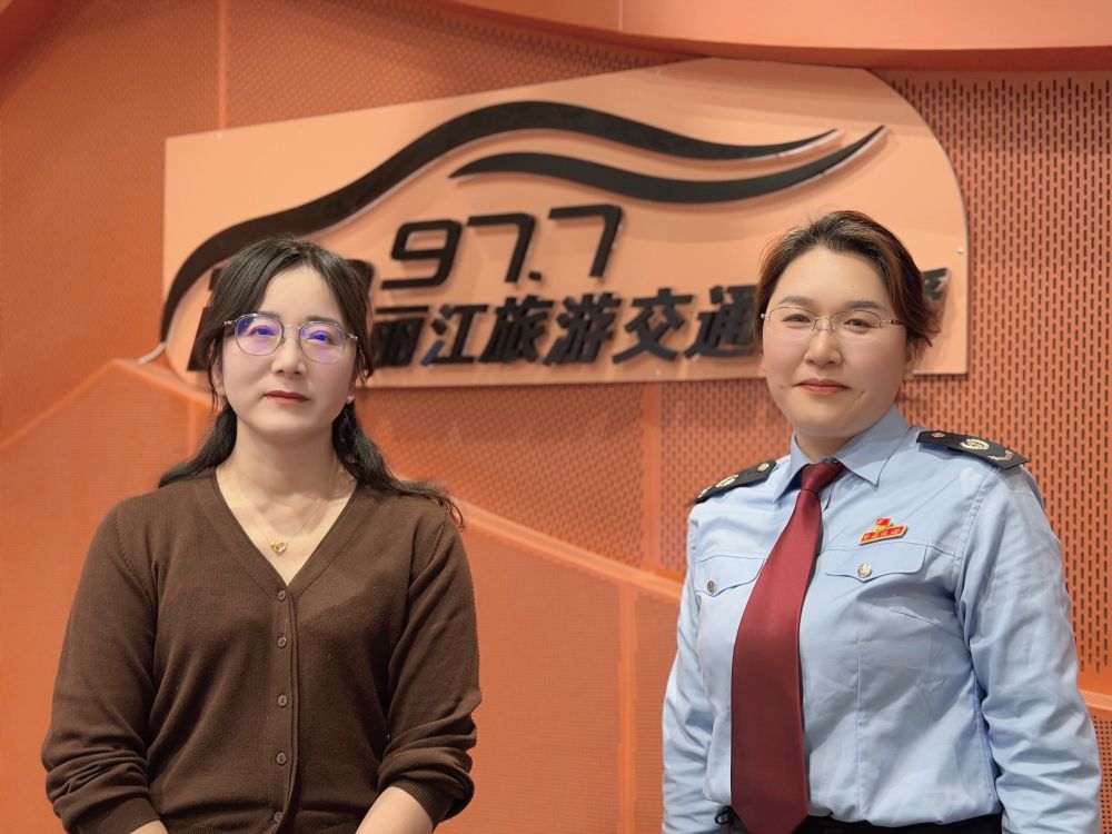 4月17日,古城區(qū)殘疾人聯(lián)合會(huì)黨組書(shū)記、理事長(zhǎng) 李耀梅(左)、古城區(qū)稅務(wù)局社會(huì)保險(xiǎn)費(fèi)和非稅收入股股長(zhǎng) 劉潔(右) 走進(jìn)FM97.7麗江旅游交通廣播直播間。(麗江融媒記者 徐蕾 攝)