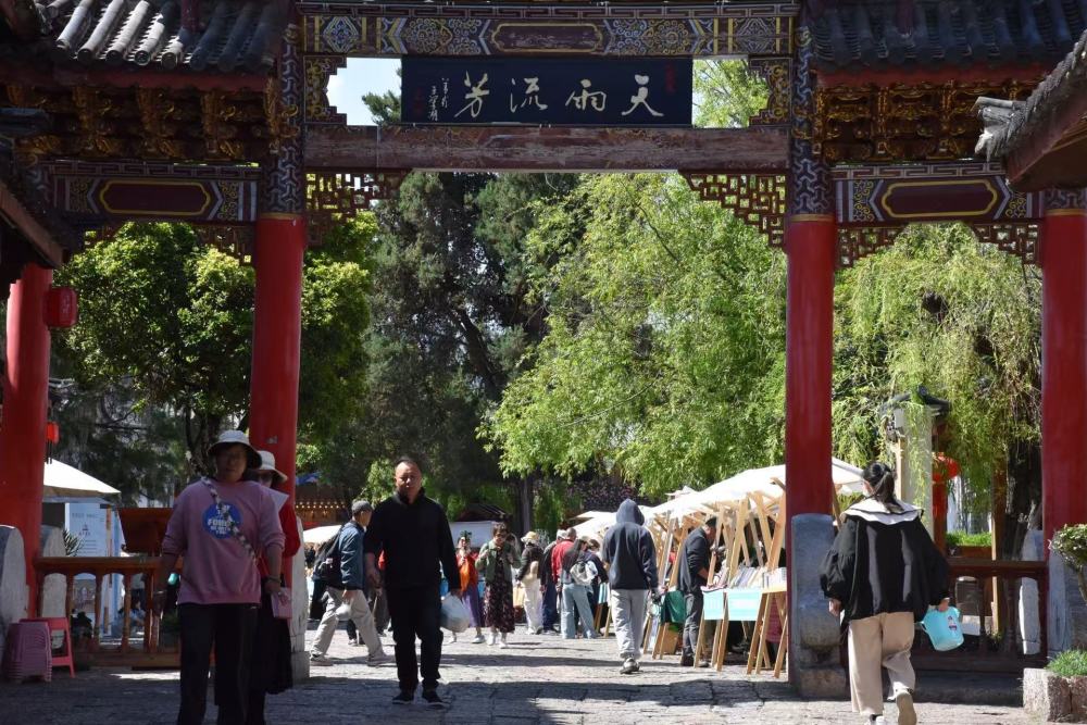 從“天雨流芳”牌坊到木府門口的“公共展區(qū)”。(見習記者 和麗菊 攝)