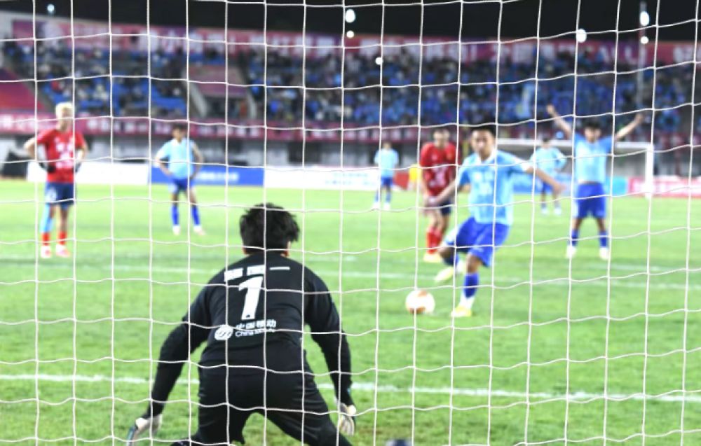 上半場44分鐘,昭通隊(duì)防線在麗江隊(duì)的不斷沖擊下,在禁區(qū)內(nèi)犯錯(cuò),麗江隊(duì)獲得點(diǎn)球。點(diǎn)球由楊國元主罰,他輕巧地用節(jié)奏變換騙過門將,推射右下角得手,麗江隊(duì)領(lǐng)先一球。