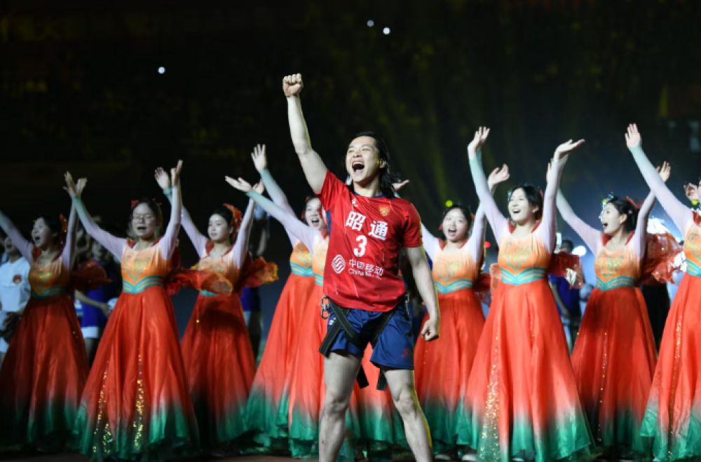 賽前,“滇超之夜?樂見昭通”燃情上演,流光溢彩的燈光秀拉開帷幕。昭通11個(gè)縣(市、區(qū))方陣帶著特色展演節(jié)目齊亮相,被稱為“云南BIGBANG”的蹦山咔拉咔組合傾情獻(xiàn)唱,千余名演職人員悅動共舞。