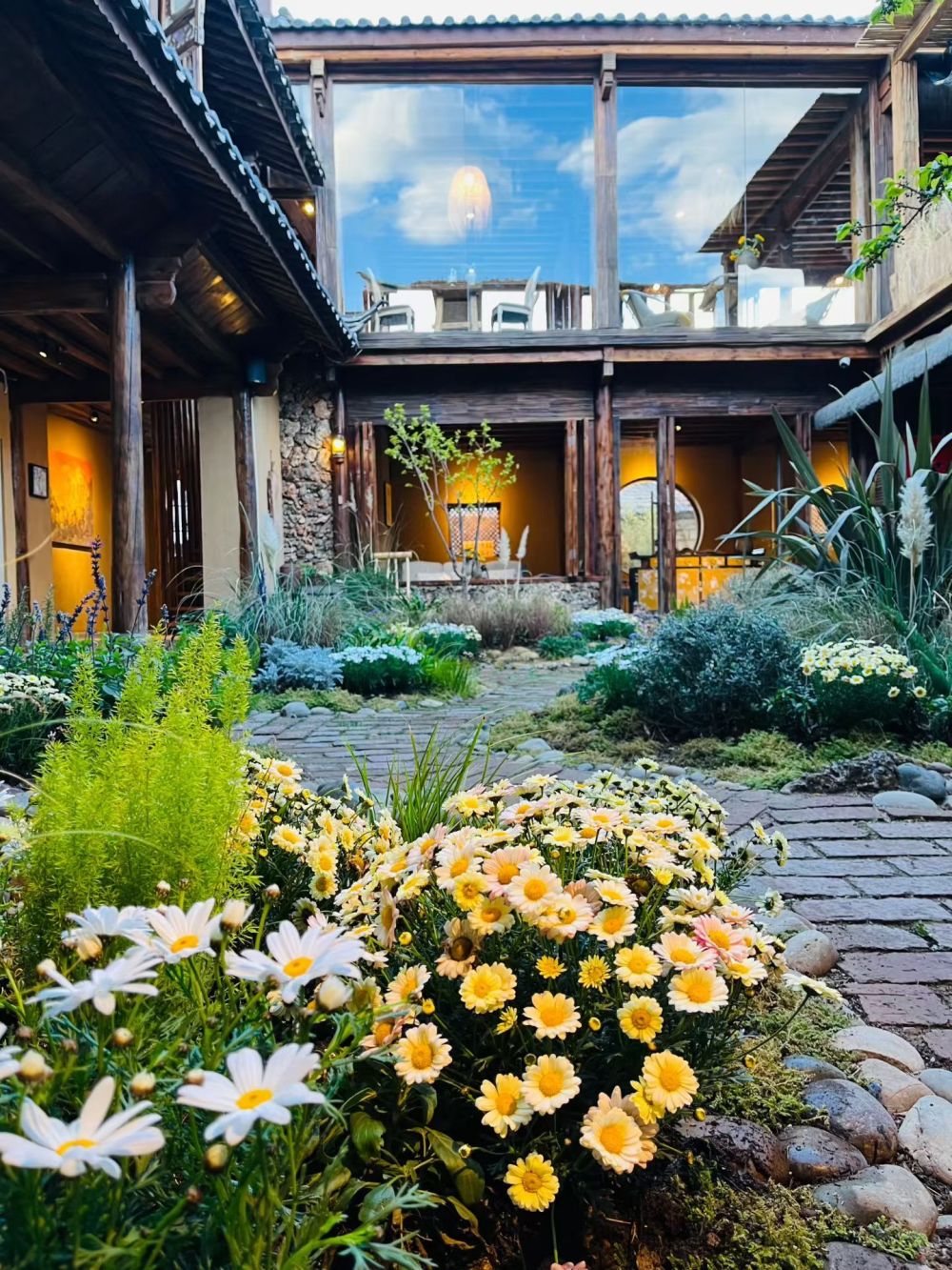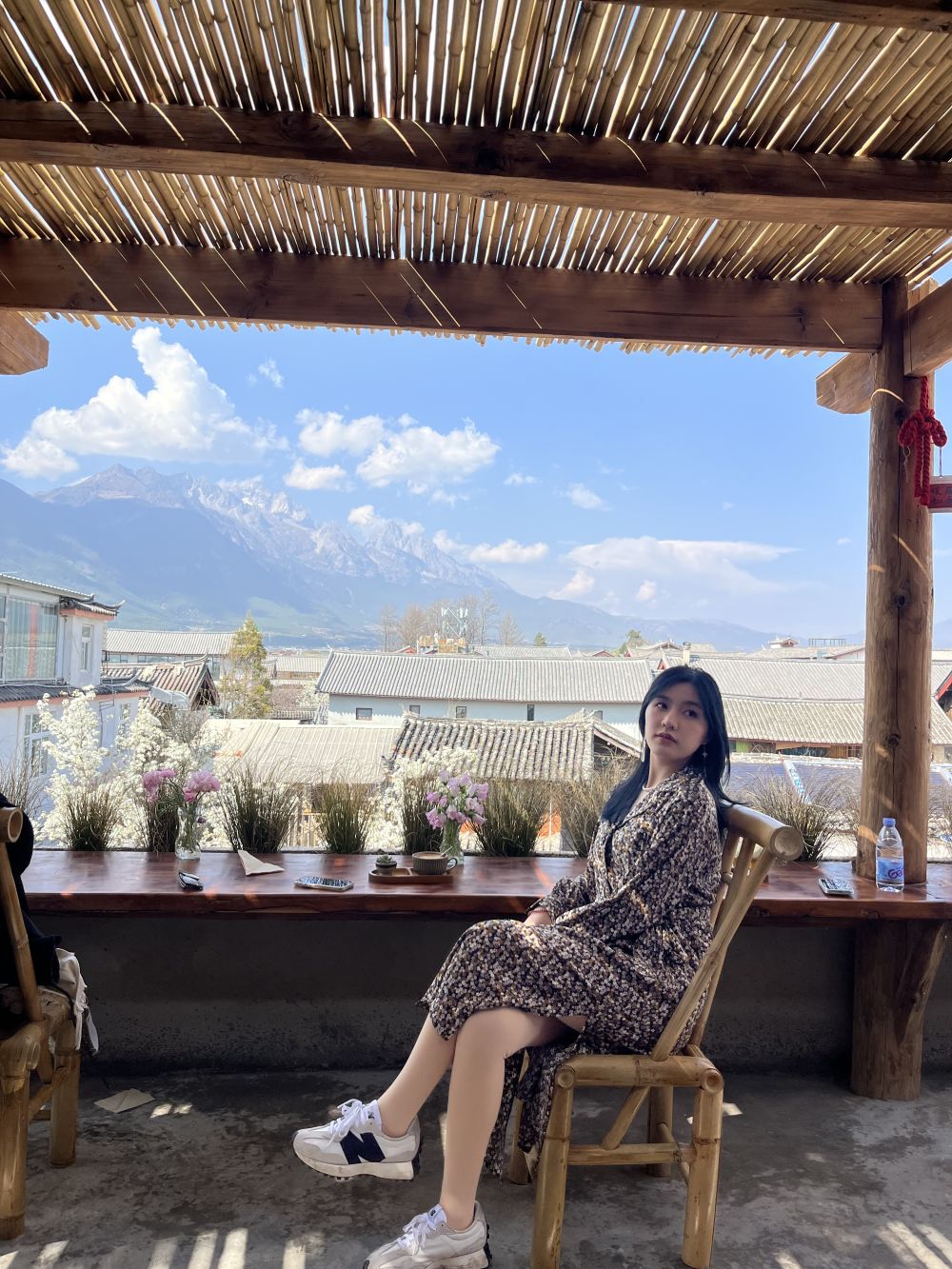走進咖啡店,最引人駐足的便是臨窗觀景位與屋頂觀景臺。通透的落地大窗將玉龍雪山的雄奇壯闊、白沙古鎮(zhèn)春日的繁花盡數(shù)框入畫中,雪山、繁花、青瓦、木墻相映成趣,宛如一幅渾然天成的山水長卷。窗外,雪白梨花肆意舒展,花瓣隨風輕搖,偶有幾片飄落窗前,與桌上的咖啡杯相映成趣;不遠處,青瓦白墻的納西民居錯落分布,裊裊炊煙與山間薄霧交織,與繁花、雪山構成層次豐富、意境悠遠的春日圖景。