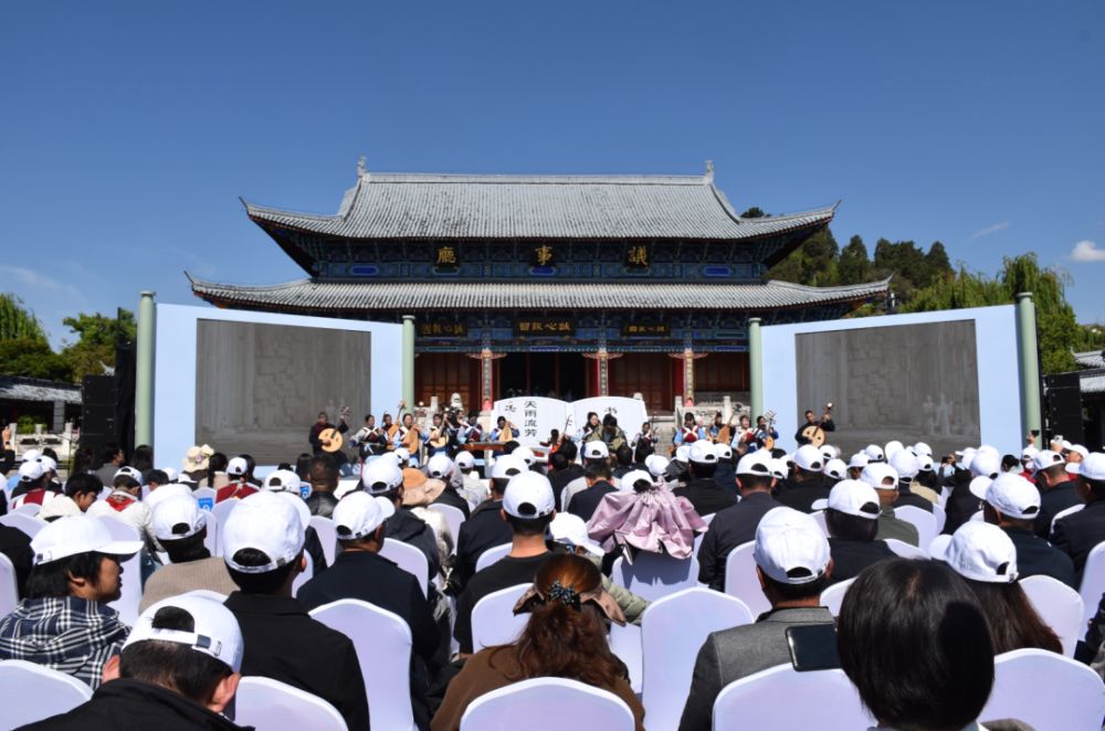 木府古院,書香氤氳,啟動(dòng)儀式在悠揚(yáng)的納西古樂中拉開帷幕。老者端坐臺(tái)前,一曲《到春來》緩緩奏響,古樸音律穿越時(shí)光,將現(xiàn)場觀眾帶入麗江厚重的文化長河,盡顯納西文化的獨(dú)特韻味。