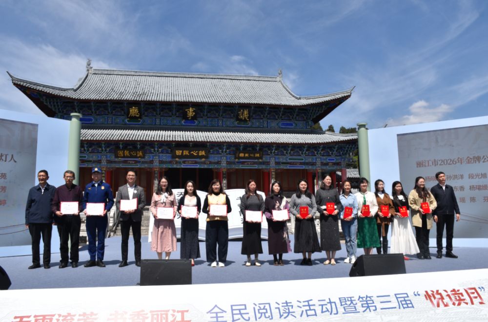 人間四月芳菲盛,古韻書香滿古城。4月18日10:30,麗江市2026年“天雨流芳 書香麗江”全民閱讀活動(dòng)暨第三屆“悅讀月”系列活動(dòng)啟動(dòng)儀式,在麗江古城博物館(木府)舉行。此次活動(dòng)由中共麗江市委宣傳部、麗江市文化和旅游局主辦,麗江市圖書館、麗江市融媒體中心、麗江古城博物館(木府)承辦,在“世界讀書日”來臨之際,以閱讀為紐帶,傳承地方優(yōu)秀傳統(tǒng)文化,奏響全民閱讀的時(shí)代樂章。