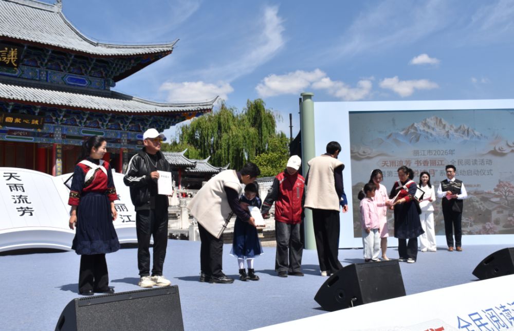 啟動(dòng)儀式上,書香傳遞與榮譽(yù)表彰同步進(jìn)行,讓閱讀的影響力持續(xù)延伸。麗江古城博物館(木府)精心準(zhǔn)備了100套《木府通論》,現(xiàn)場贈(zèng)送給觀眾代表,以書籍為媒,讓更多人了解麗江歷史文化。