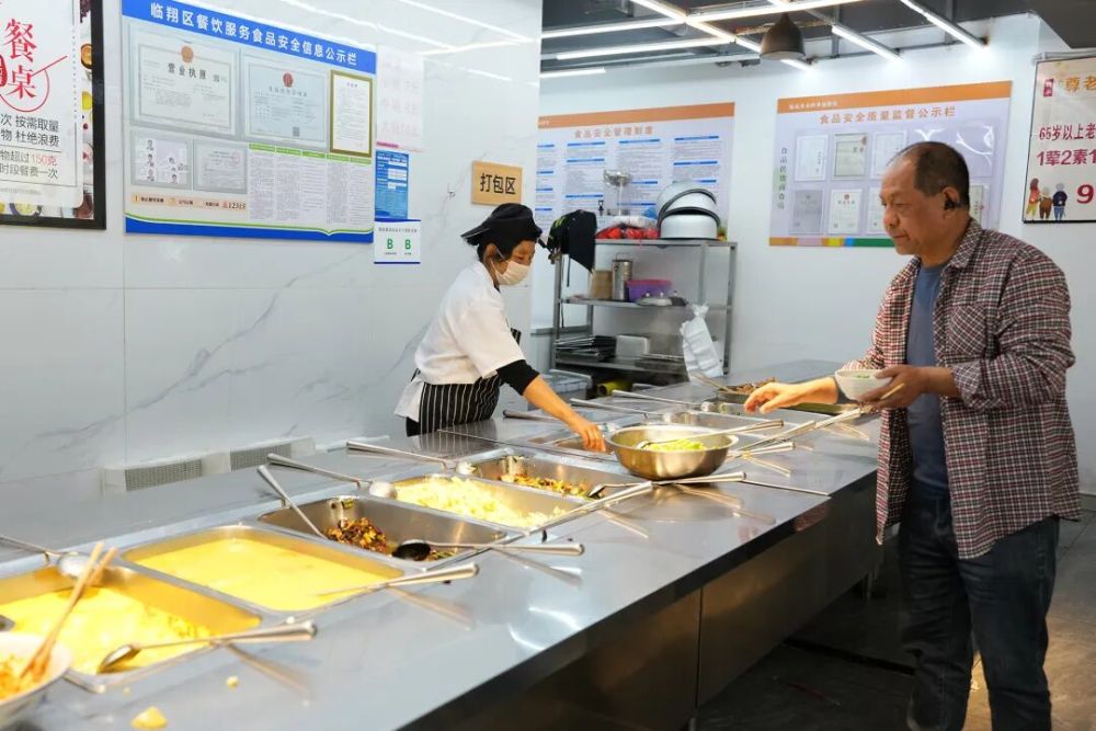 居民在玉龍社區(qū)老年食堂打餐。(郝亞鑫 攝)